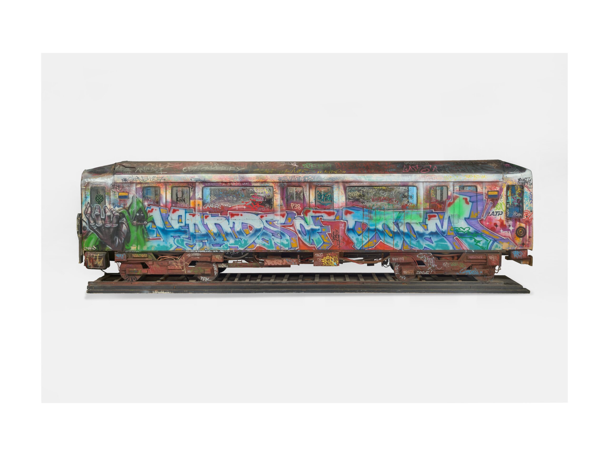 Afin de prolonger cette approche historique et témoigner de la vitalité exponentielle du graffiti à partir de la fin des années 1980, l’espace du patio du musée proposera quant à lui un focus sur le thème du train et du métro, support privilégié des graffeurs, à partir des collections du Mucem, premier musée européen à avoir constitué un fond dédié au graffiti au tout début des années 2000. L’exposition dans le patio présentera oeuvres, objets, photographies retraçant l’activité des « trainistes » européens.