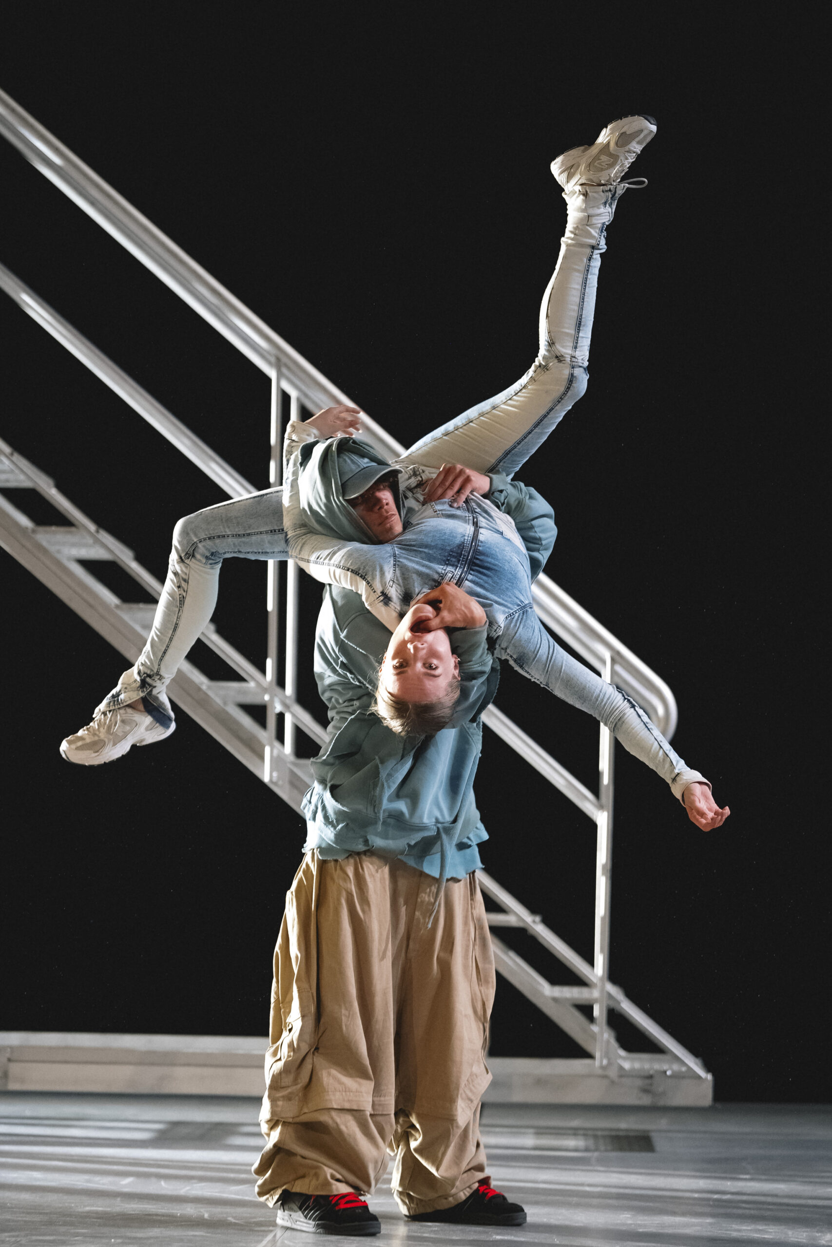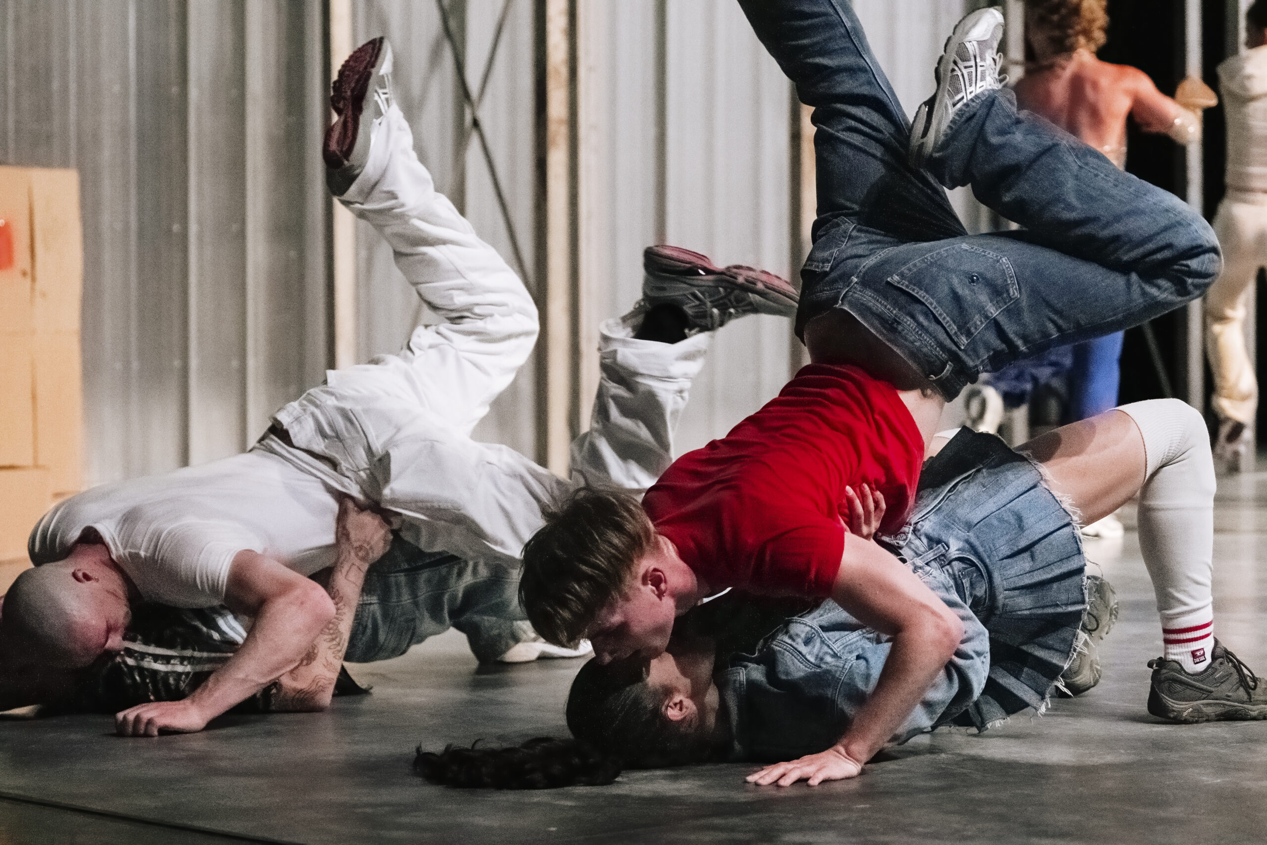 À la base de la création chorégraphique, nous invoquons plusieurs imaginaires qui contiennent ce rapport ambigu entre corps réel et corps simulé : cinéma d’action, cascades, comédies musicales, jeux-vidéos en open world et réseaux sociaux tels que Tik Tok.