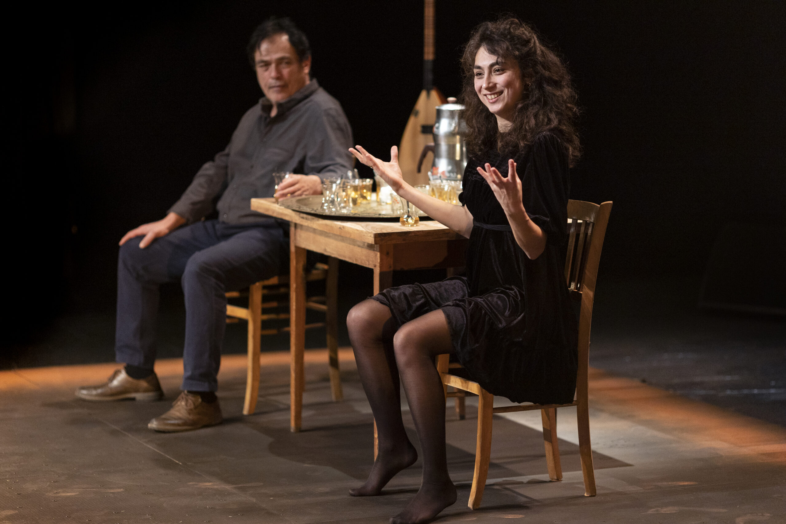 Pour sa première création, Hatice Özer a invité Yavuz Özer à partager la scène avec elle. Il est aussi discret et taiseux qu’elle est volubile et enjouée. Il gagne sa vie comme ouvrier mais, chanteur et joueur de luth oriental hors pair, il est de toutes les célébrations dans sa communauté. En turc ou en français, parlé ou chanté, ils racontent ensemble les sacrifices, la douleur du déracinement, mais aussi toutes ces histoires de filiation et de tradition, drôles ou poétiques, qui les rapprochent. Cette déclaration d’amour filial, tendre et subtile, est aussi un hommage puissant à tous les exilés.