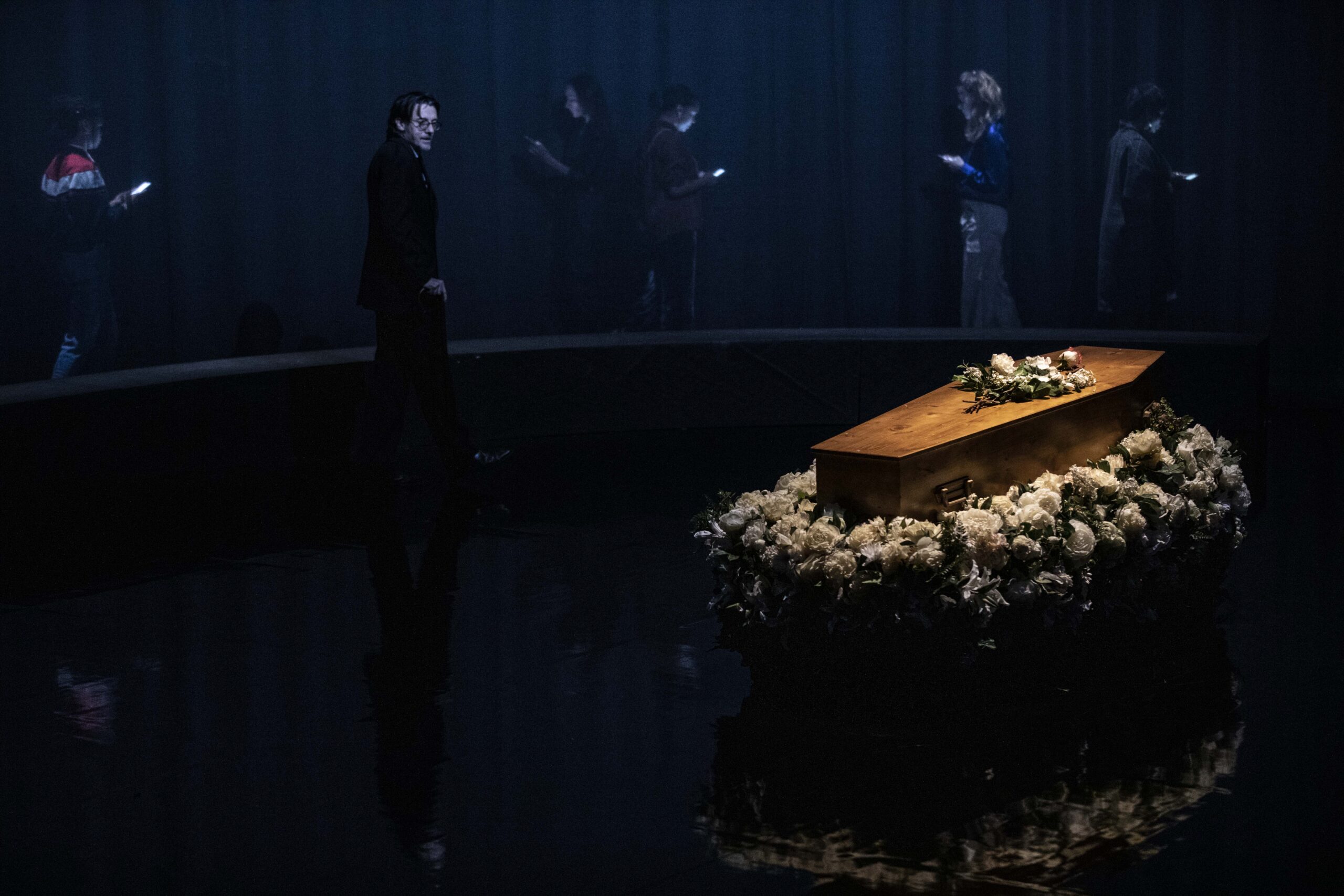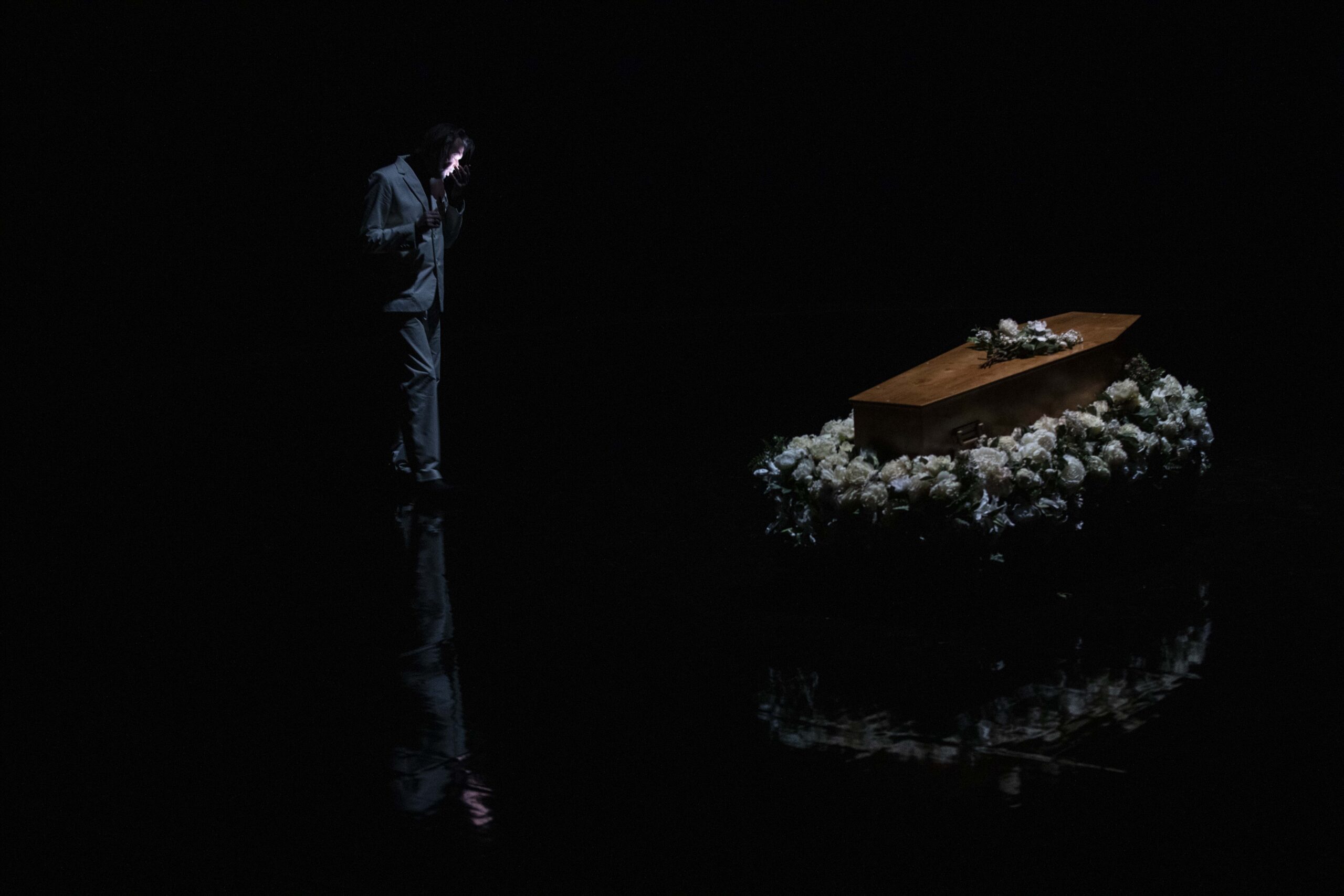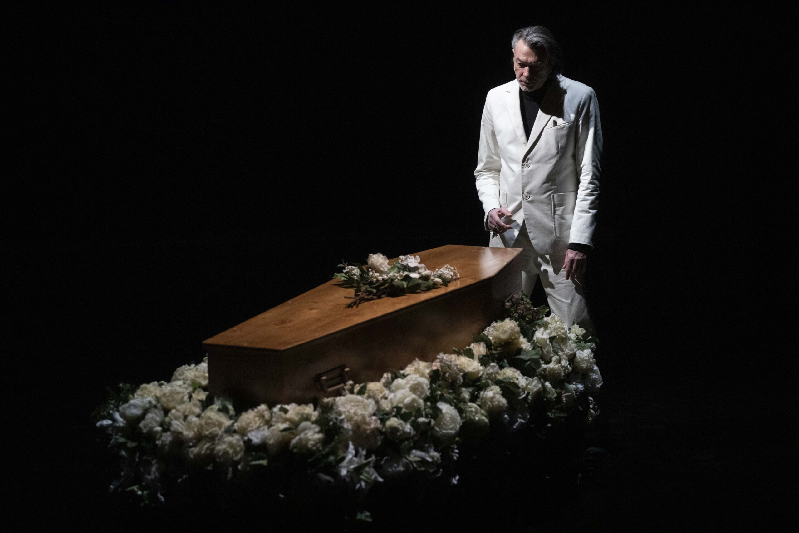 Pascal Rambert pratique un théâtre ancré dans des états de crise. Le décès sert ici de détonateur et libère l’expression de l’inconscient, de l’inavouable, du désir et du manque. Écrite pour 11 interprètes de haute volée, aux âges, corps et origines variés, la pièce rassemble comédiens aguerris et nouveaux venus, tout juste sortis de l’école du Théâtre national de Strasbourg. Dans un espace immense et clos élégamment sculpté par la lumière, Mon absente ausculte les maux, les secrets et l’infini besoin de consolation.
