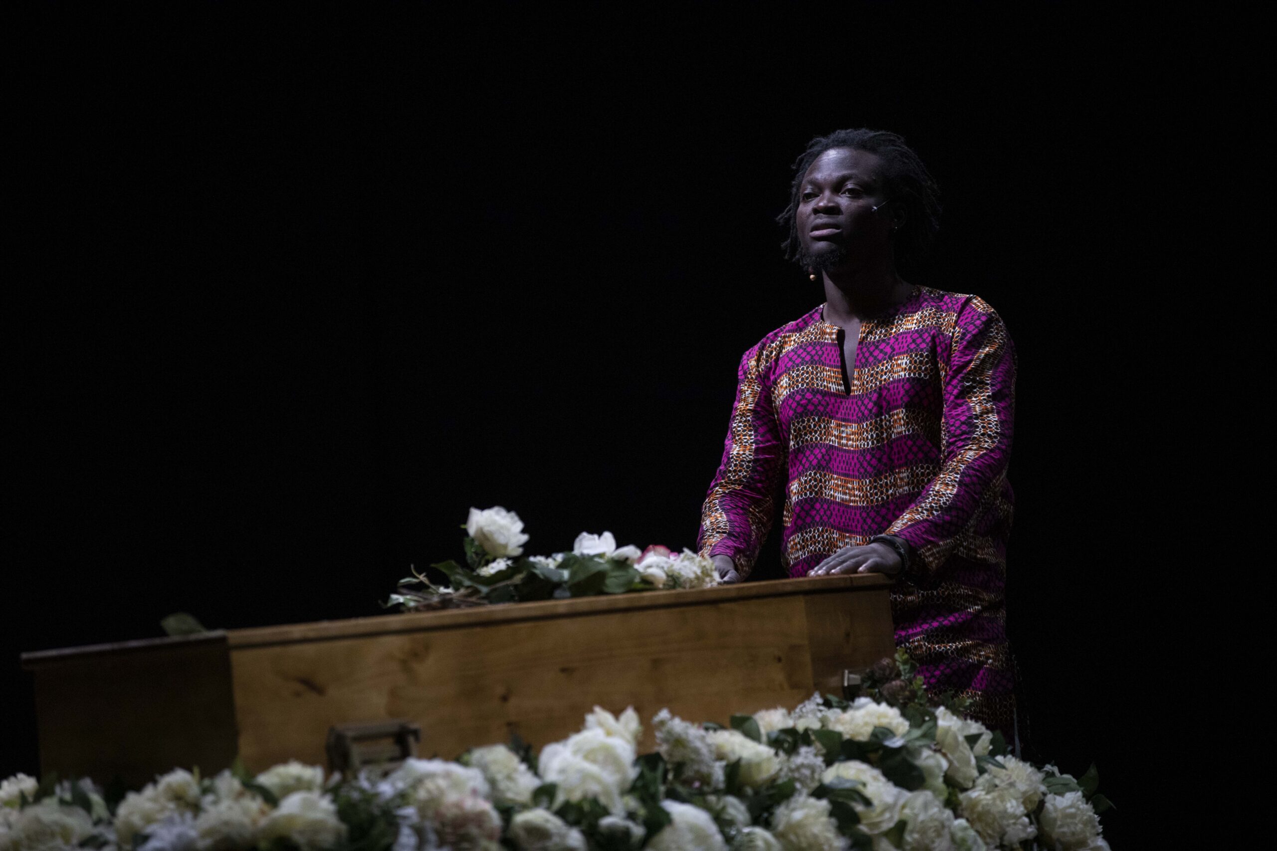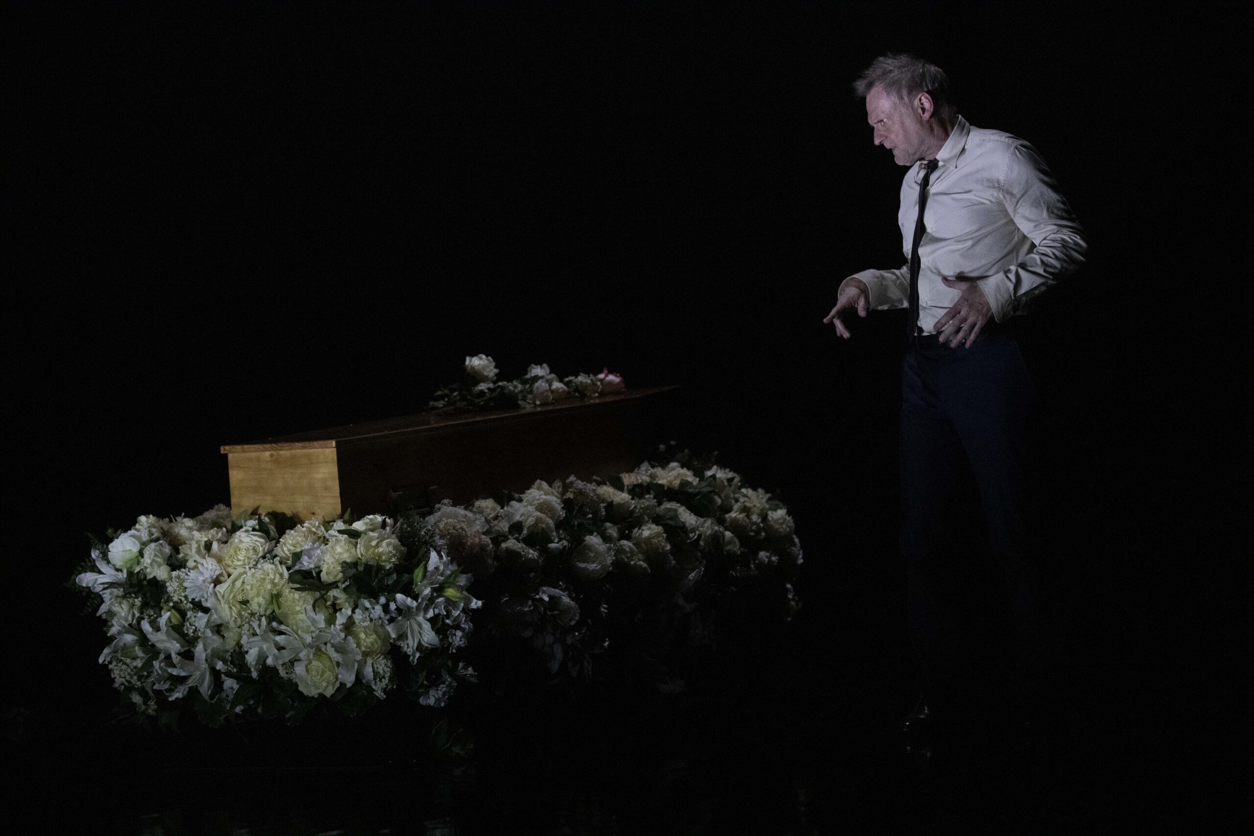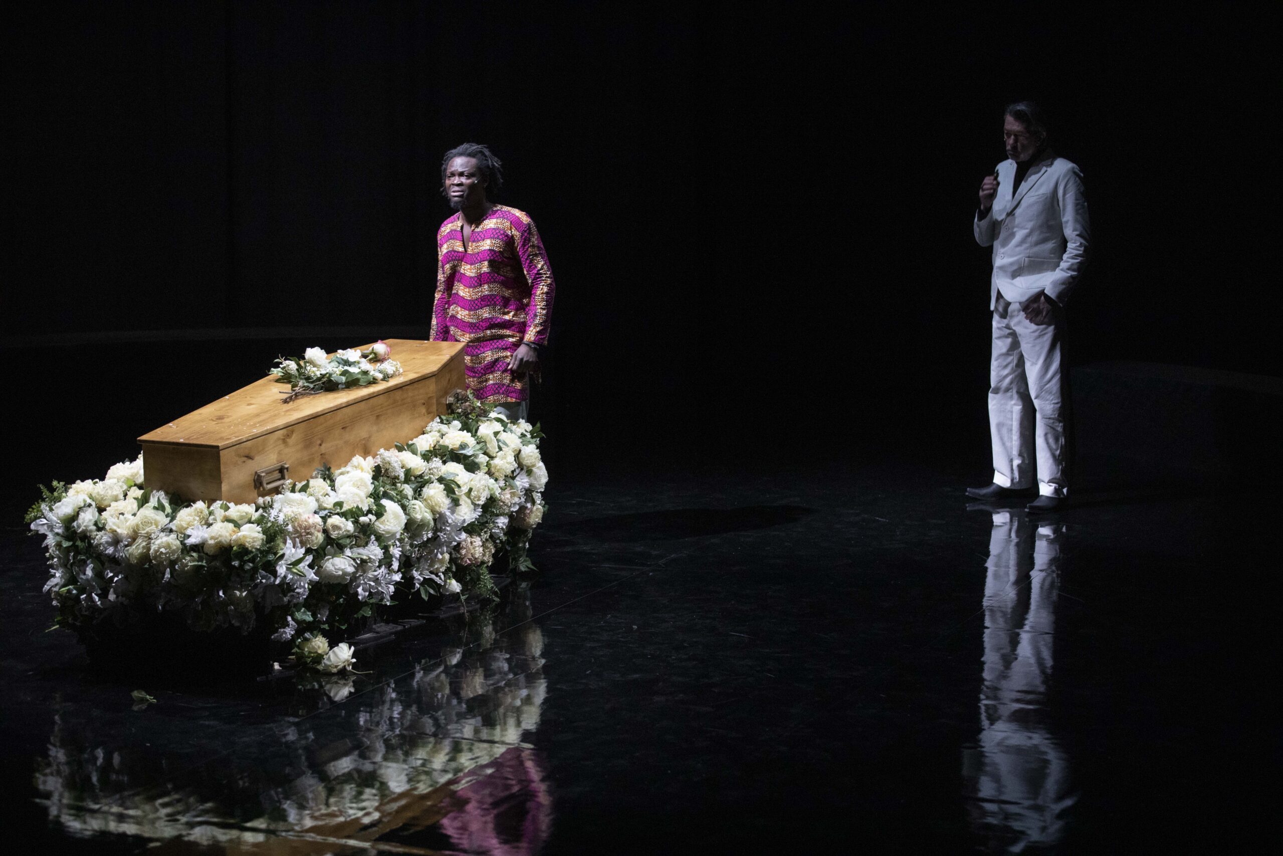 Pascal Rambert pratique un théâtre ancré dans des états de crise. Le décès sert ici de détonateur et libère l’expression de l’inconscient, de l’inavouable, du désir et du manque. Écrite pour 11 interprètes de haute volée, aux âges, corps et origines variés, la pièce rassemble comédiens aguerris et nouveaux venus, tout juste sortis de l’école du Théâtre national de Strasbourg. Dans un espace immense et clos élégamment sculpté par la lumière, Mon absente ausculte les maux, les secrets et l’infini besoin de consolation.