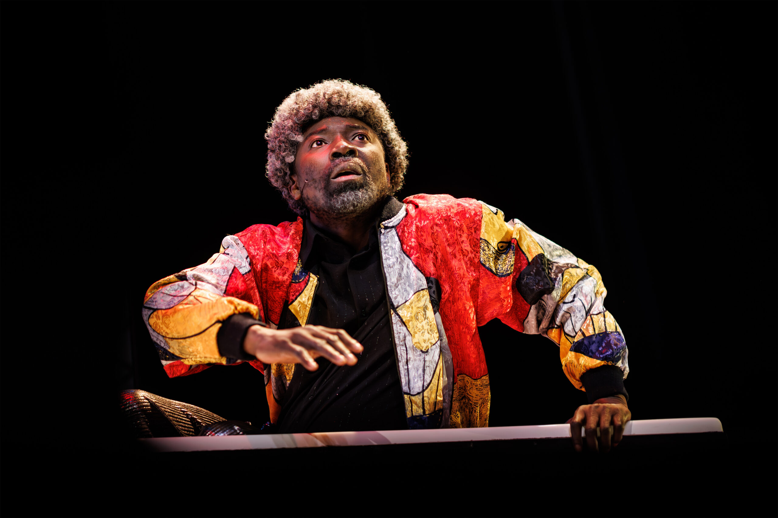 Entre polar et mythologie, une fresque cocasse et dansante, truffée de joutes verbales truculentes et d’aphorismes à la dérision dévastatrice, auxquels rien ni personne – pas même l’auteur – n’échappe, si ce n’est une certaine idée de la poésie et du théâtre. On passe instantanément d’un continent à l’autre, des musiciens légendaires se mêlent aux protagonistes, la rationalité est explicitement et joyeusement bafouée au profit d’enchaînements fantaisistes, dans une délectable cohérence onirique. Le dernier cru pétillant de Dieudonné Niangouna !