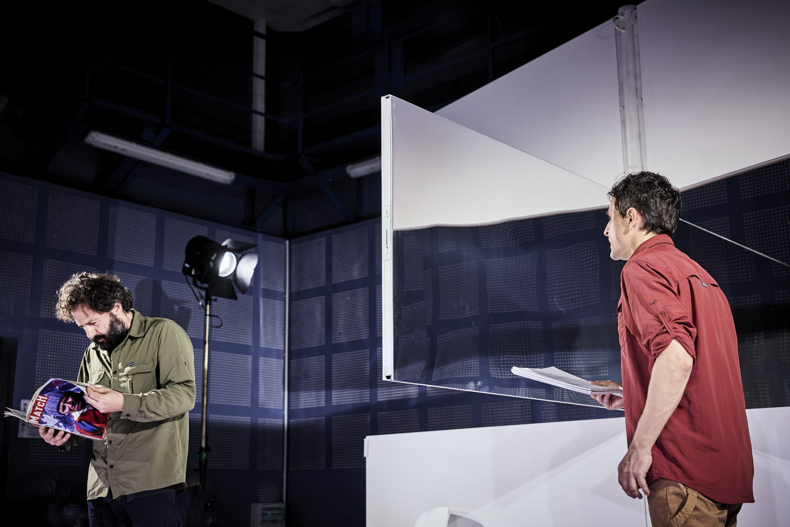 Dans Une ombre vorace, en donnant vie à ces deux protagonistes, le metteur en scène argentin Mariano Pensotti compose une « oeuvre documentaire fictionnelle », une histoire présentée comme réelle mais dont la part imaginaire est presque totale.